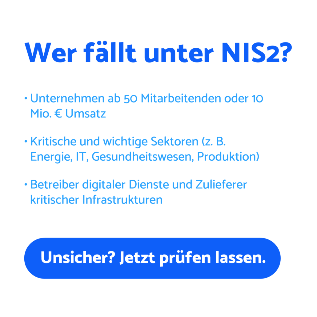 Unterstützung bei der Umsetzung der Anforderungen der NIS2-Richtlinie. Wir helfen dabei, Governance-Strukturen zu etablieren und regulatorische Anforderungen zuverlässig zu erfüllen.